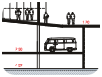 Die Außenwände der Garage im Erdgeschoß sind verglast, ähnlich einem Schaufenster eines Autohauses. Bei Dunkelheit bringt die beleuchtete Garage Licht und städtische Atmosphäre in die sonst leblose Umgebung.